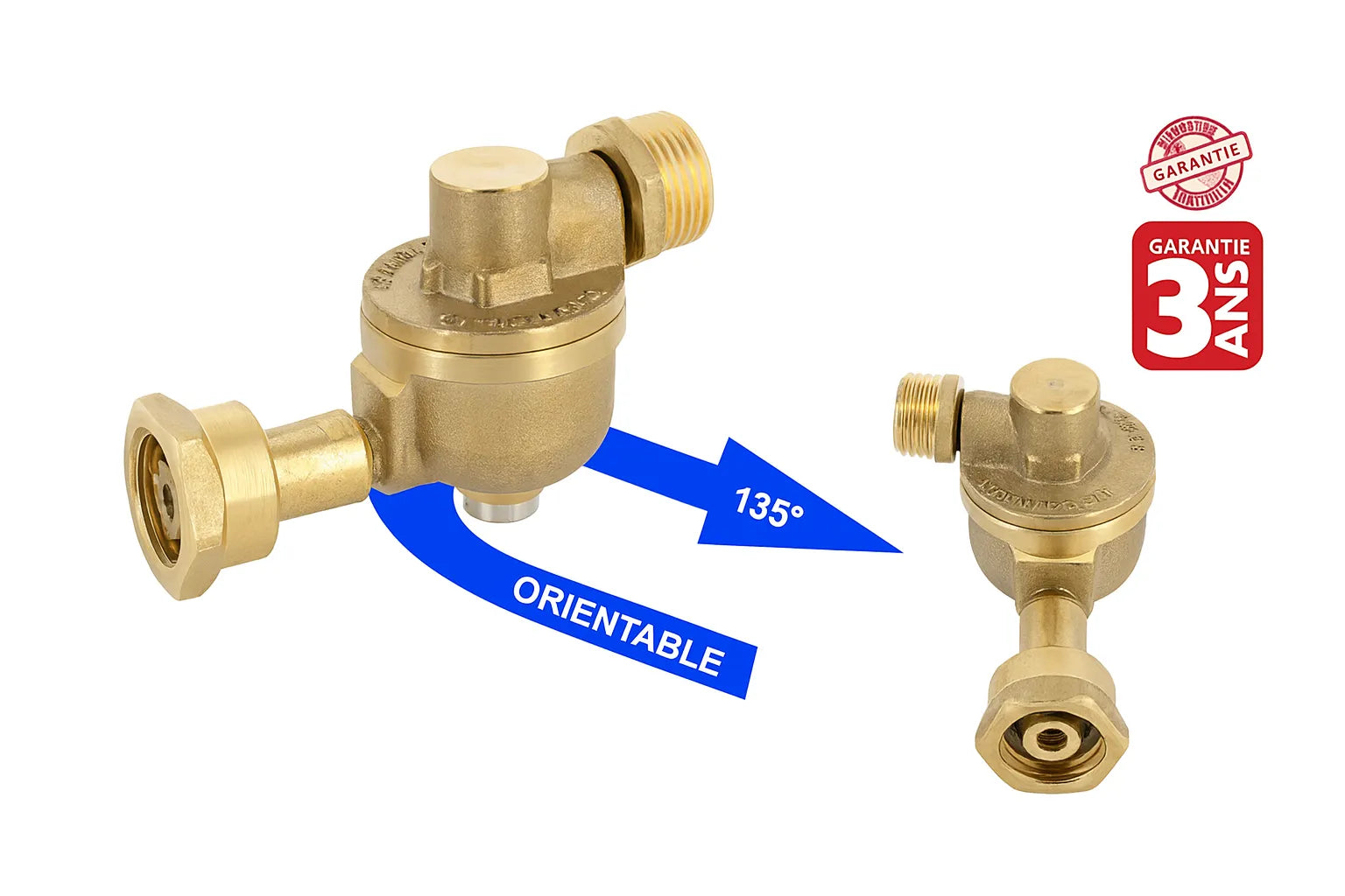 ✅ Limiteur de débit de sécurité, coupant automatiquement l’arrivée de gaz en cas de rupture du flexible
