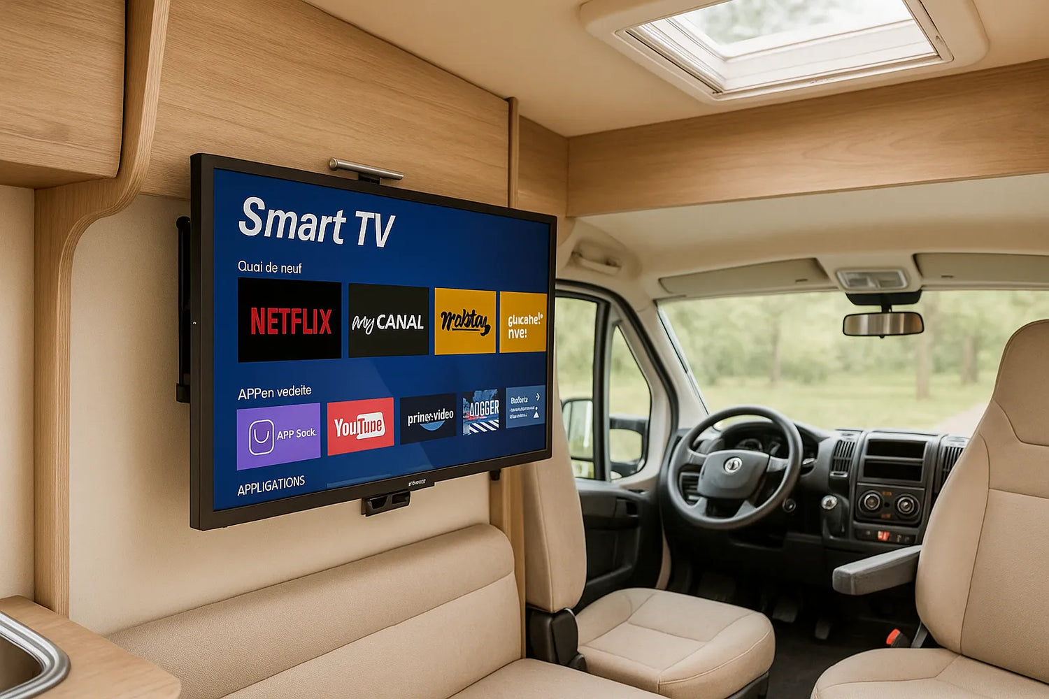Oui, c’est l’un des grands avantages : le système WebOS intégré permet d’accéder directement aux applications de streaming comme Netflix, YouTube, etc., sans besoin de boîtier externe. Cependant, il faut une connexion Internet stable, typiquement via WiFi (camping avec WiFi, hotspot 4G, partage depuis un téléphone). En mobilité, la qualité dépend de la couverture réseau.